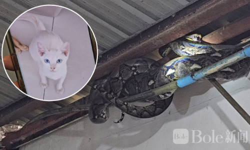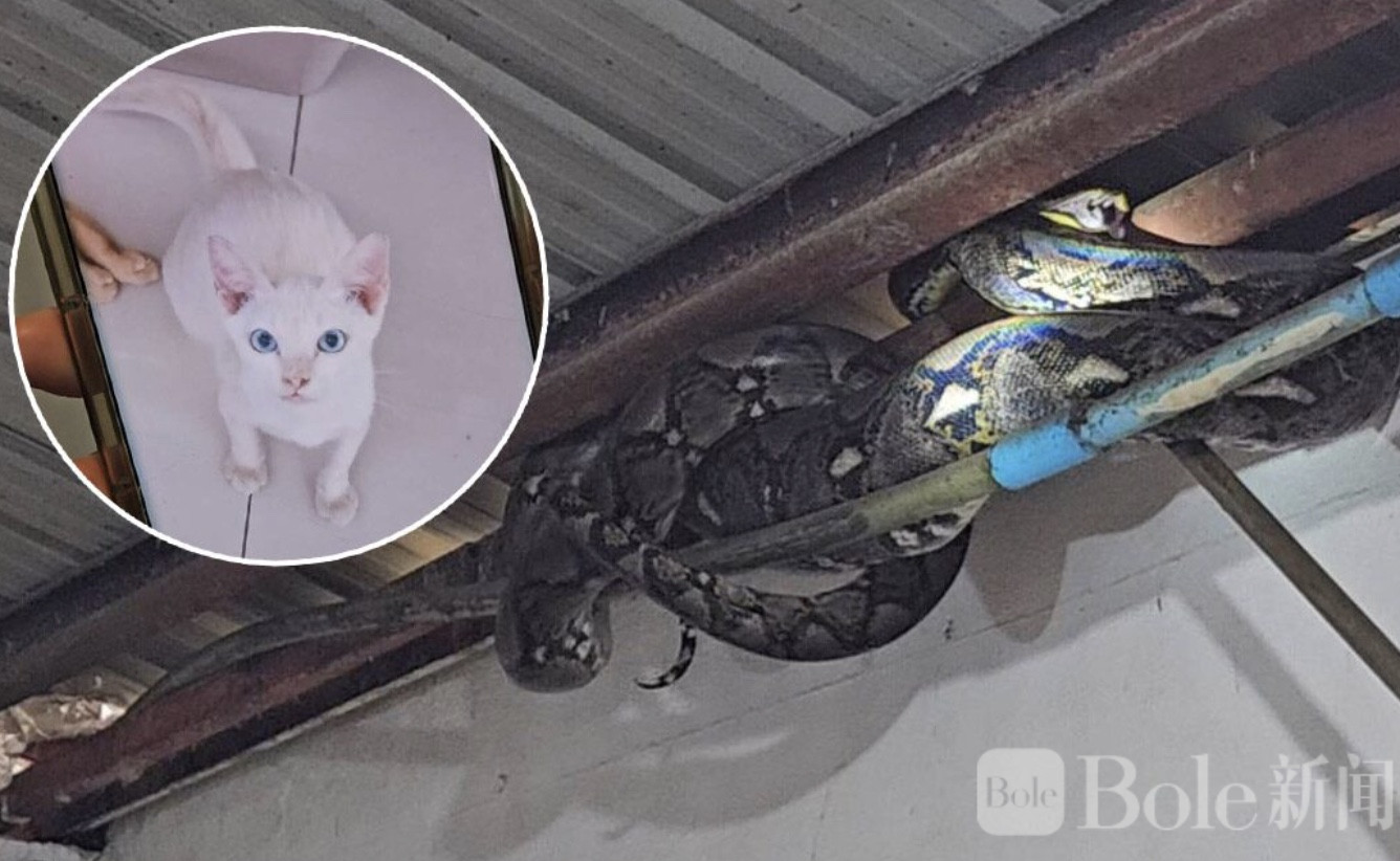 屋主亦表示,早前发现家中少了一只猫,多方寻找未果,直到抬头发现铁梁上的蟒蛇才察觉异常。确认失踪猫正是那只约1岁的白色猫咪后,全家人悲痛不已。
