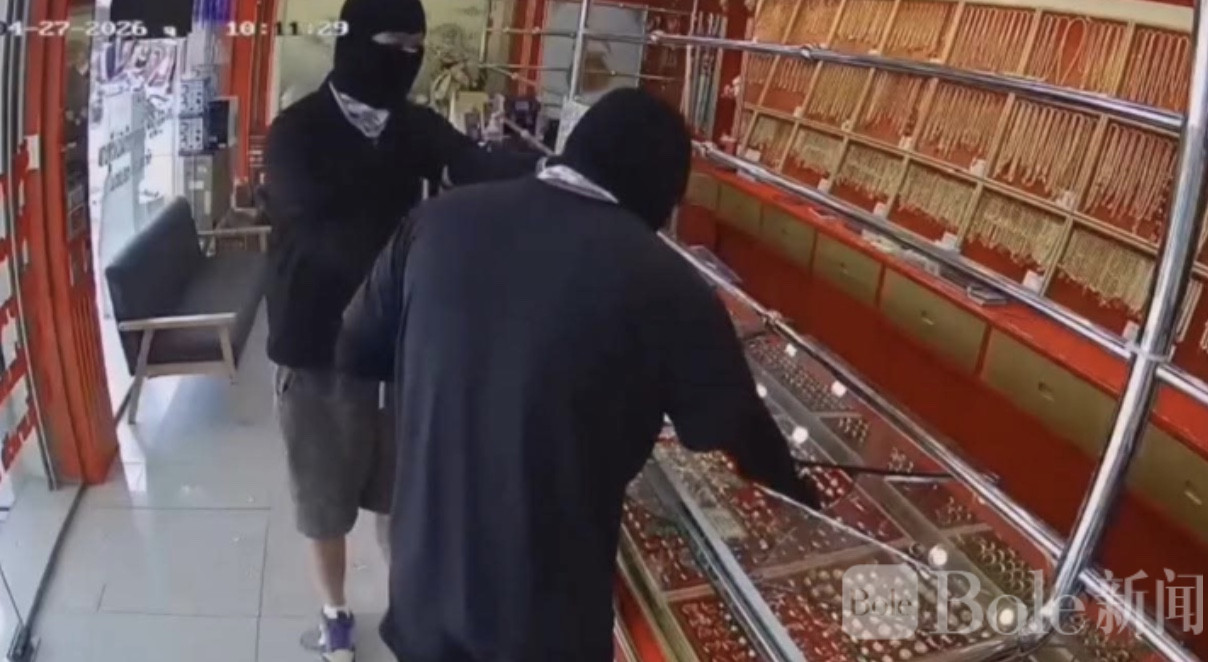 Bole新闻专讯:泰国呵叻府猜也蓬县地区一家金店于27日上午发生一起持械抢劫案,两名蒙面男子闯入店内实施抢劫,短时间内卷走大量金饰后驾车逃逸,涉案金额约30万泰铢,引发当地震动。