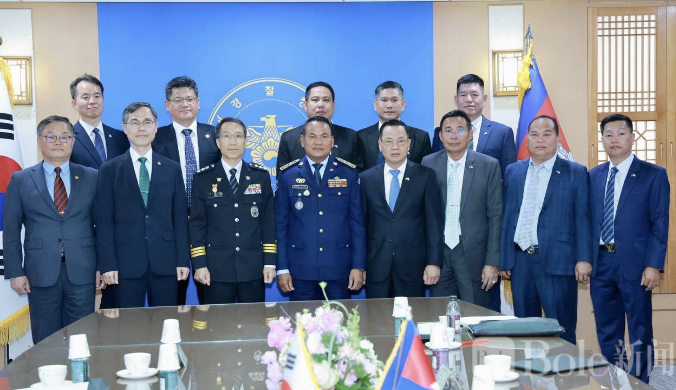 Bole新闻专讯: 今天上午,柬埔寨国家警察总署总监苏通率领高级代表团前往韩国首尔,与韩国警察厅代理厅长刘宰成举行了一场工作会谈。会谈气氛务实而直接,双方围绕近年来愈发活跃的跨国犯罪问题交换意见,并就进一步深化执法合作达成多项共识。