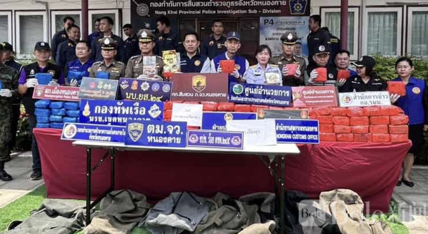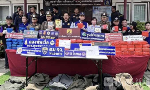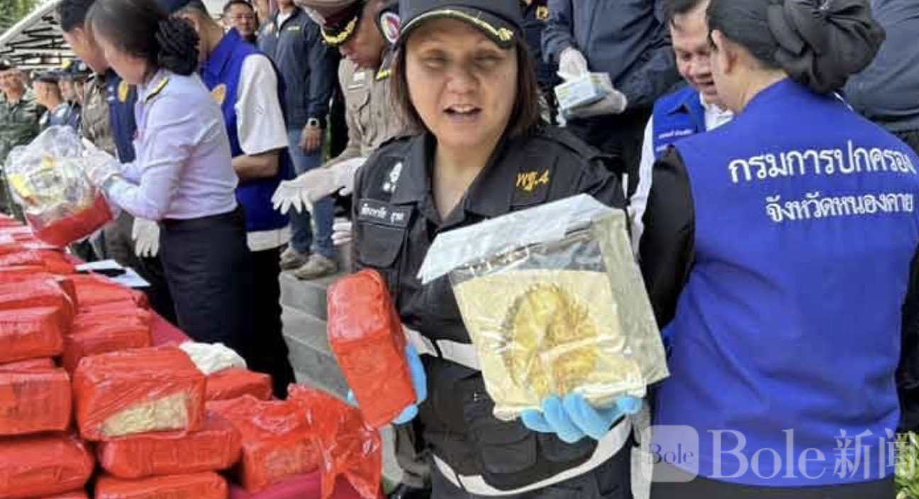 Bole新闻专讯: 泰国与老挝交界的湄公河沿线近日再度查获一起重大跨境毒品走私案。警方在一次联合行动中截获近百公斤级冰毒,毒品被伪装成水果包装,甚至印上“榴莲”图案企图蒙混过关。然而就在抓捕过程中,嫌疑人开枪掩护逃跑,场面一度紧张,最终仍留下大批毒品仓皇撤离。