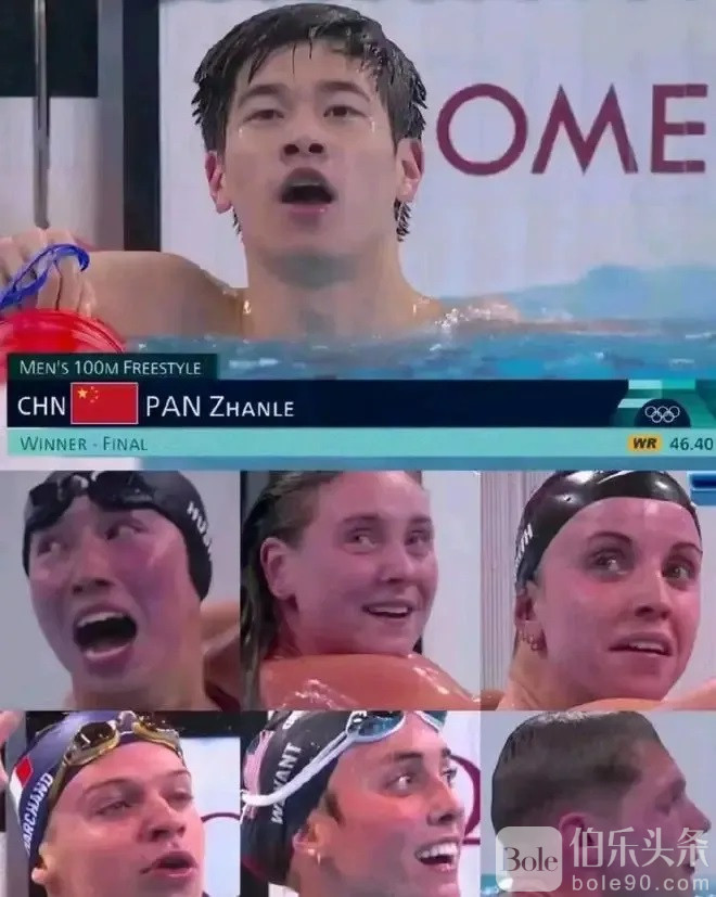 (巴黎奥运会上,中国游泳选手和国外游泳选手,赛后的脸部颜色成鲜明对比)