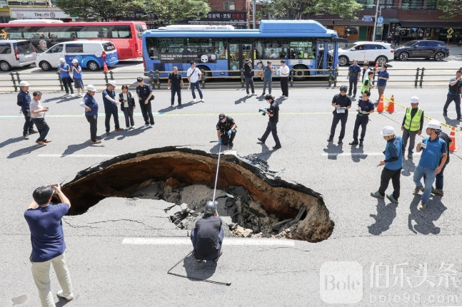 伯乐头条专讯:韩国首尔的路面星期五(8月30日)出现裂缝,距离前一天地陷的地点仅约30公尺,令韩国民众人心惶惶。