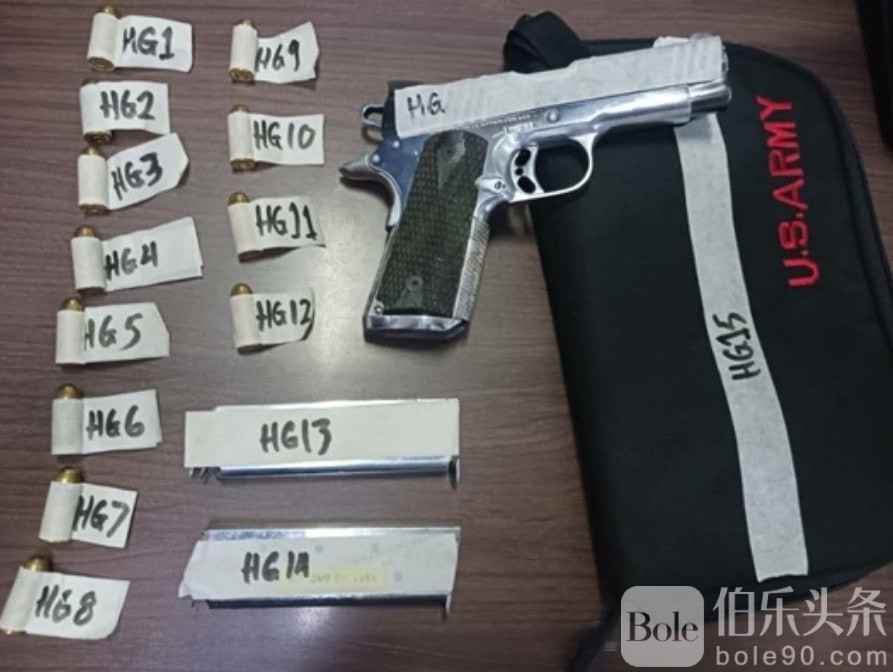 在行动中,警方缴获了三把.45口径手枪、六个弹匣、38发子弹、一把长刀、一把折叠刀、四部手机、伪钞以及一辆银色三菱冒险车。