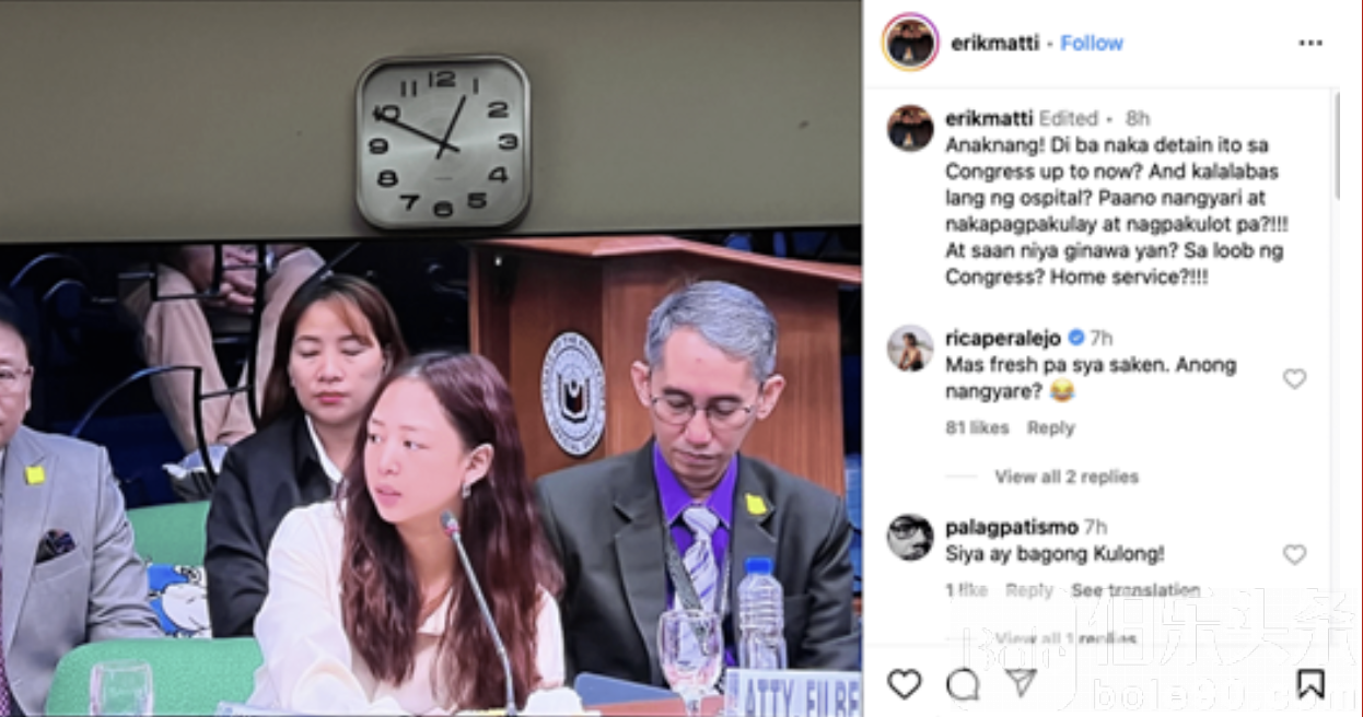 这一声明是回应电影导演埃里克·马蒂(Erik Matti)在社交媒体上的言论。马蒂注意到王某在参议院听证会上卷发的造型,与她在先前听证会上的发型有所不同,引发外界猜测她是否在拘押期间享受了美发服务。