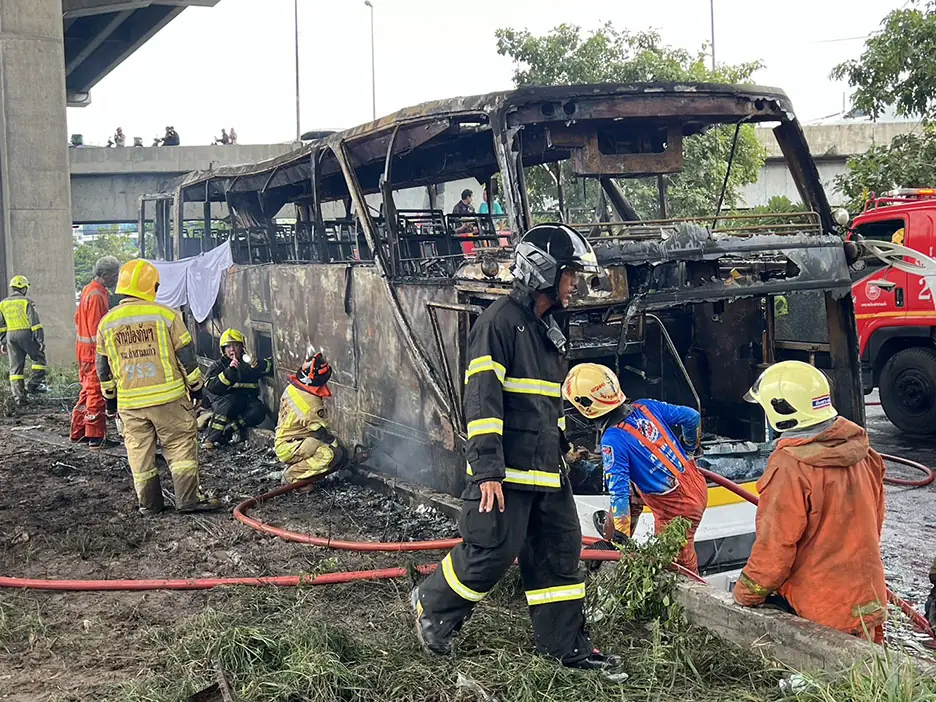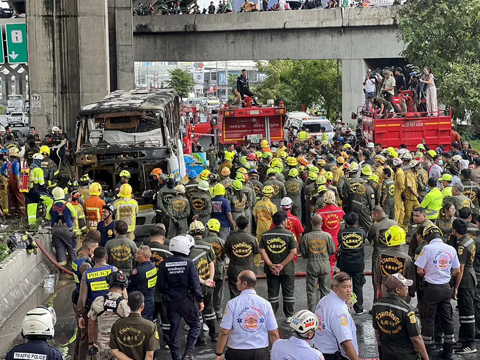 伯乐头条专讯:10月1日中午,泰国中部巴吞他尼府发生一起震惊全国的校车火灾悲剧。一辆载有38名学生、6名教师、1名司机和1名随车人员的校车在返回乌泰他尼府的途中突然起火,造成至少23人丧生,其中包括20名学生和3名教师。这起事件引发了全国哀悼,泰国总理贝东丹·西那瓦(Paetongtarn Shinawatra)承诺政府将全力援助受害者家属。