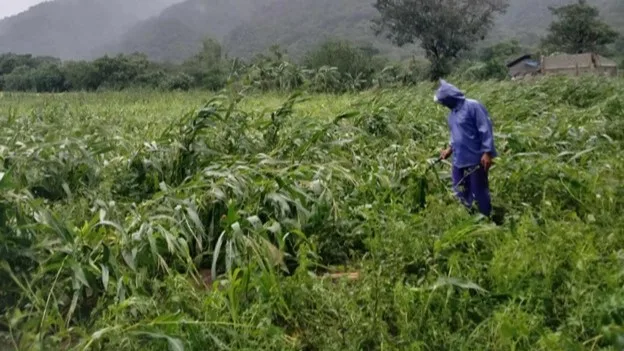 他说,村里的许多其他农民也面临同样的问题,未收获的庄稼也被风暴摧毁。