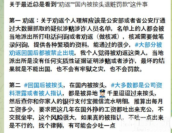 然后呢,搞电诈的没劝返回去几个,倒是劝回去了好多个在外务工的。结果限制人家出境,弄得人家生意受挫。