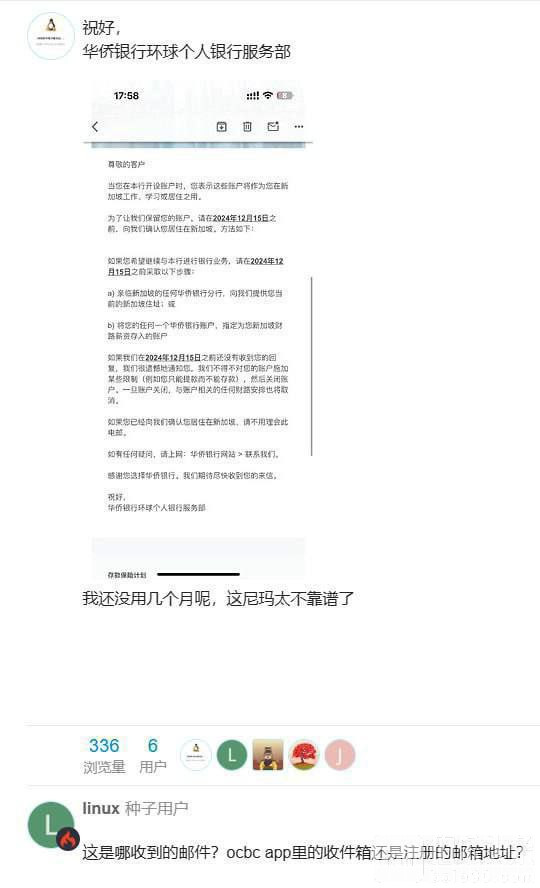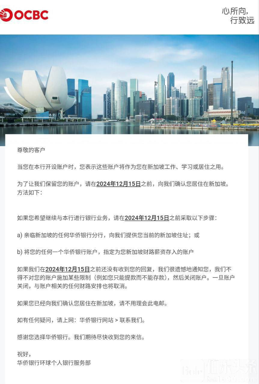 伯乐头条专讯:(伯友投稿)新加坡也开始收割了,盘总们在新加坡小金库要注意了!新加坡华侨银行(OCBC Bank)将清退境外用户。