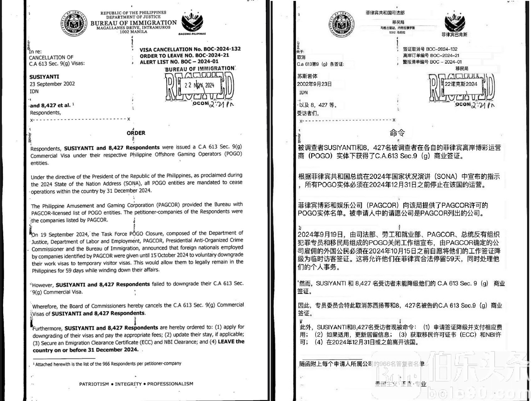 菲律宾政府已要求这些人员在2024年12月31日之前离境,否则将面临被驱逐出境并列入黑名单的风险。