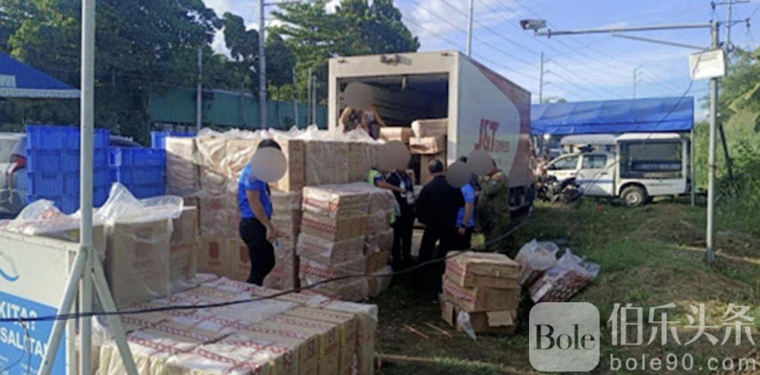 伯乐头条专讯:菲律宾达沃市执法人员近日在一个检查站成功拦截一辆轻型卡车,该车涉嫌运输价值超过980万比索的走私香烟。