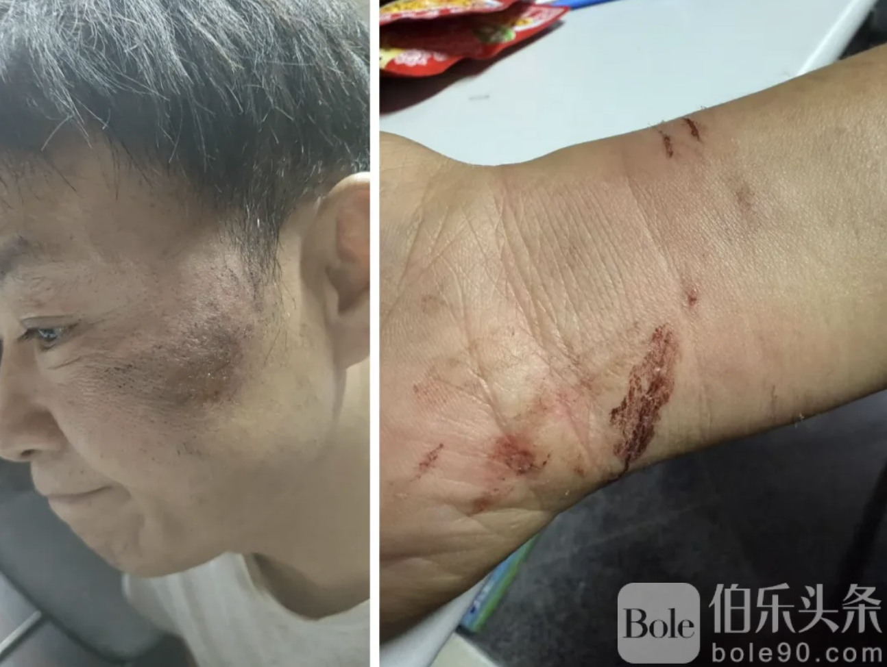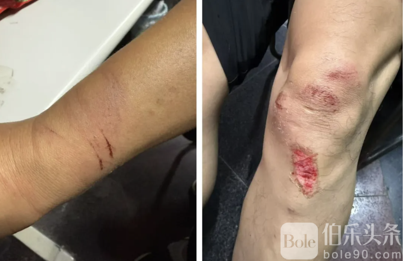 在保护手机的过程中,冯先生被警察拖行了几米,并在地面上受到暴力对待,导致脸部、双腿和手腕受伤。最终,冯先生的手机和车钥匙被抢走,双手被铐上手铐,随后被带到万景岗区警察局。