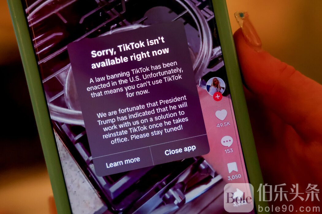 伯乐头条专讯:TikTok星期天(1月19日)说,正在恢复向美国用户提供服务。此前美国当选总统特朗普说,他将在星期一(20日)重新执政后恢复TikTok,但要求美国企业拥有TikTok一半的所有权。