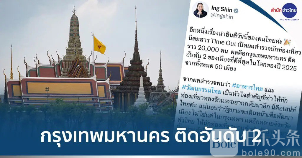 伯乐头条专讯:1月19日,泰国总理佩通坦发文祝贺曼谷被《Time Out》杂志评为2025年全球第二佳城市。她表示,这是泰国人民的一大喜讯,很开心曼谷在2万余名的城市居民调查中脱颖而出,排名全球第二。