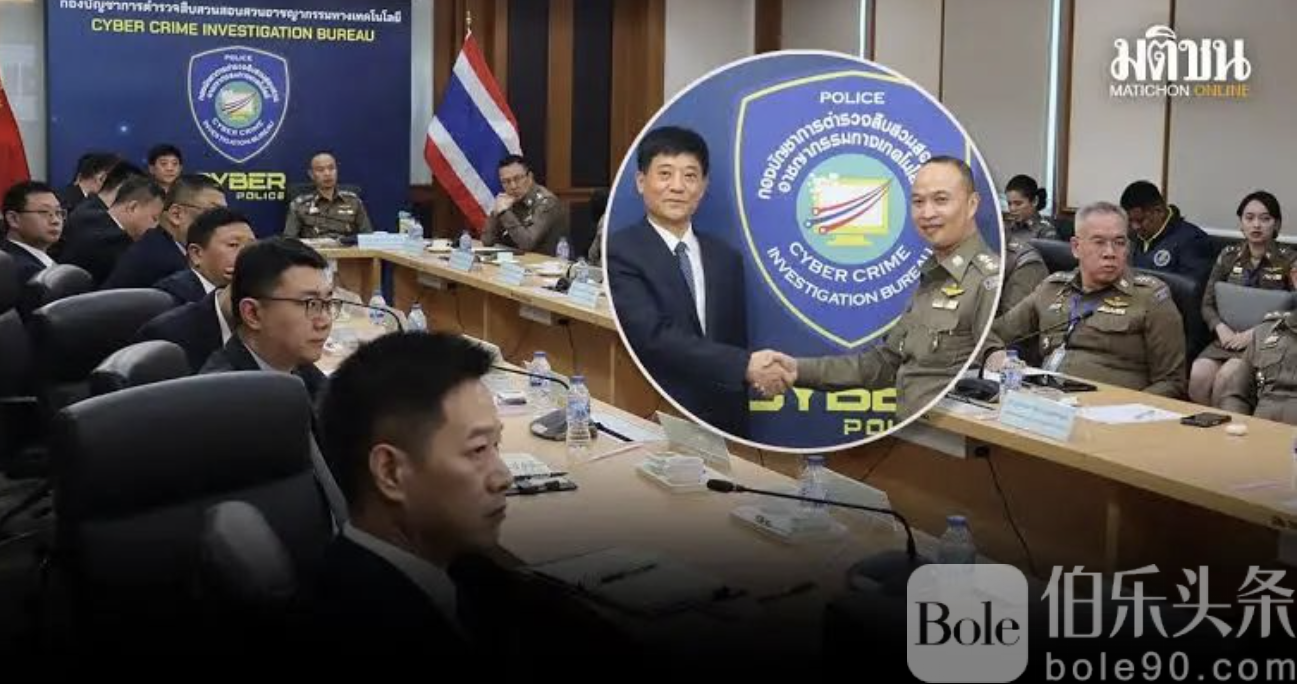 泰国网络警察局(บช.สอท.)与中国公安部近日召开高级别会议,重点讨论妙瓦底地区电信诈骗犯罪猖獗的问题。会议由泰国网络警察局局长泰隆·皮乌攀警察中将(พล.ต.ท.ไตรรงค์ ผิวพรรณ)主持,中国公安部副部长刘忠义(Mr. Liu Zhongyi)率领15名高级官员代表出席,共同商讨如何深化两国执法合作。