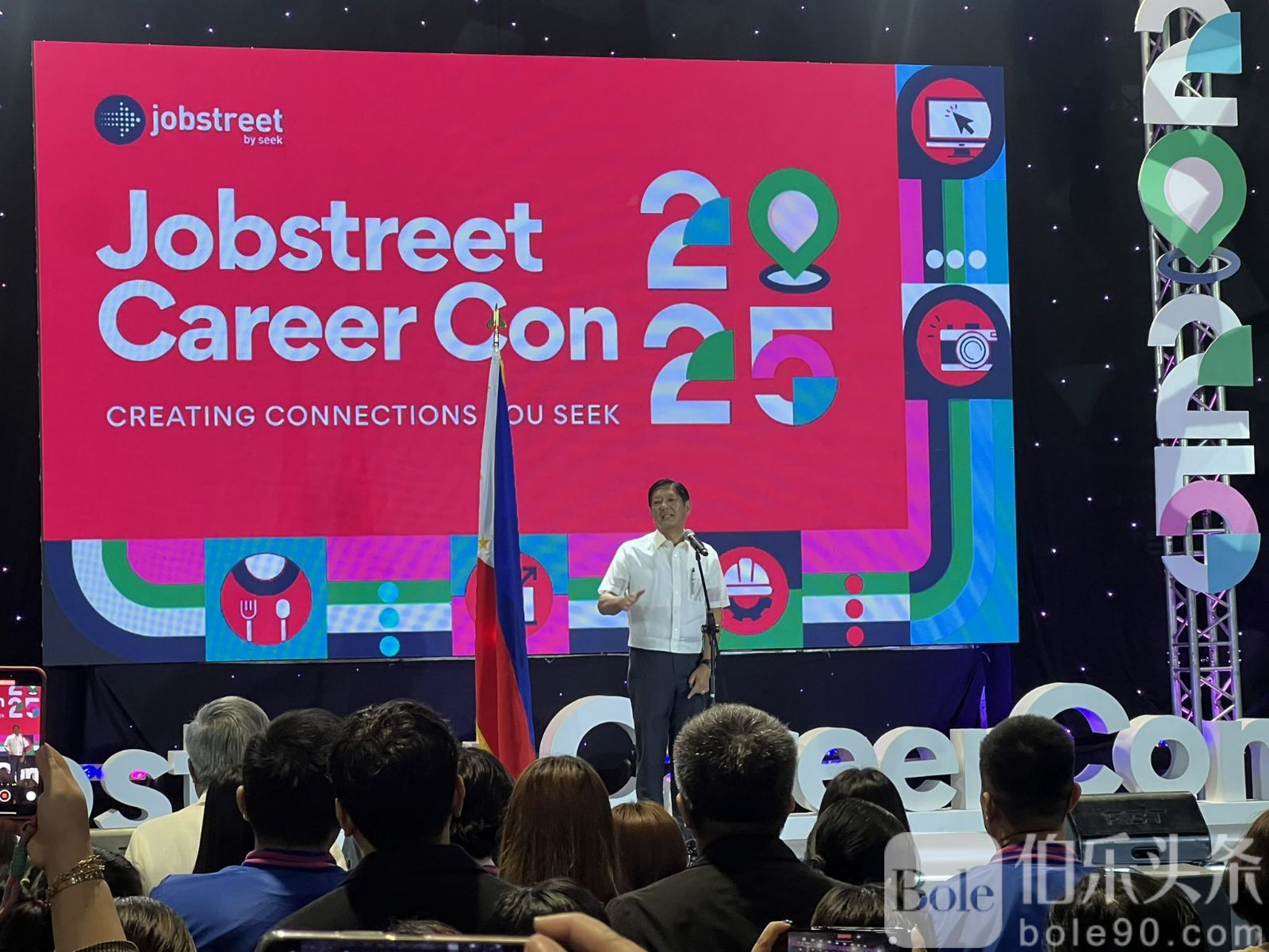 伯乐头条专讯:菲律宾总统费迪南德·R·马科斯(Ferdinand R. Marcos Jr.)于2025年1月29日在帕赛市SMX会议中心出席了Jobstreet Career Con 2025活动。总统在致辞中指出,政府正在持续采取措施,进一步降低全国的失业率。