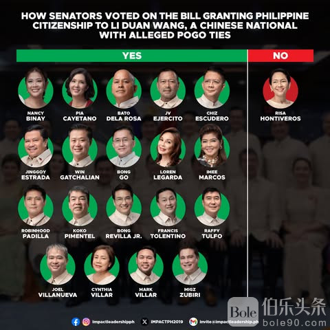 伯乐头条专讯:菲律宾参议院近日以19票赞成、1票反对的表决结果,通过众议院第8839号法案,正式授予中国公民王某菲律宾国籍。然而,此举在政界及社会各界引发热议,尤其是王某与博彩业的潜在关联,成为争议焦点。