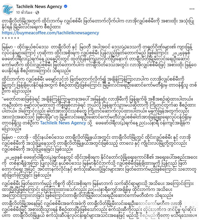 泰国当局昨天召开紧急会议,决定切断掸邦省份的电力。与湄塞区接壤清莱府包括切断互联网连接和燃料输送。