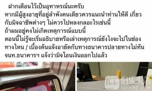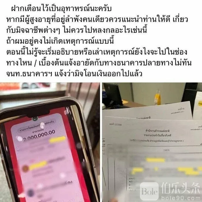 伯乐头条专讯:在2月3日,暖武里府发生了一起令人震惊的诈骗案件。一名退休教师成为了呼叫中心诈骗的受害者,损失了200万泰铢。事情发生时,诈骗者通过短信应用程序联系了这位老妇人,冒充财政部官员,告知她的银行账户余额超过200万泰铢,要求她进行转账。