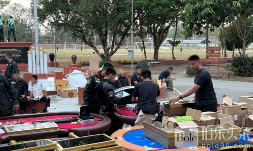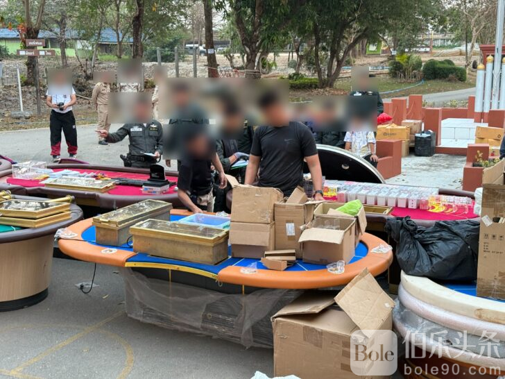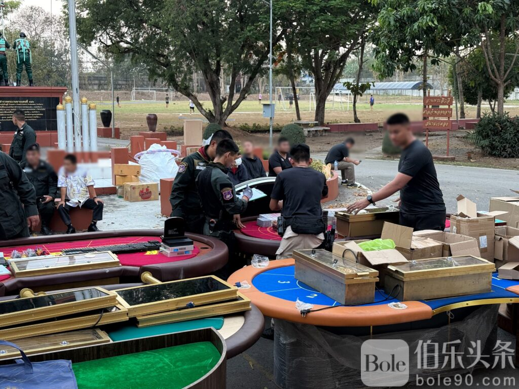 伯乐头条专讯:据泰媒报道,2月6日7时左右,泰国达府湄索县警方联合驻湄索的特别任务部队、地方行政部门以及海关部门查获了一批网络赌博设备。