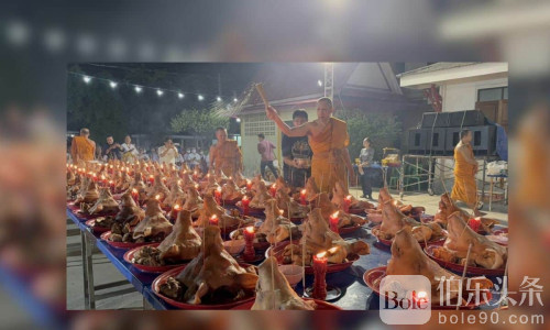 伯乐头条专讯:一名台湾男子在中了百万彩票大奖后,决定前往曼谷赛迈区的苏旺纳兰寺进行大规模的供奉。