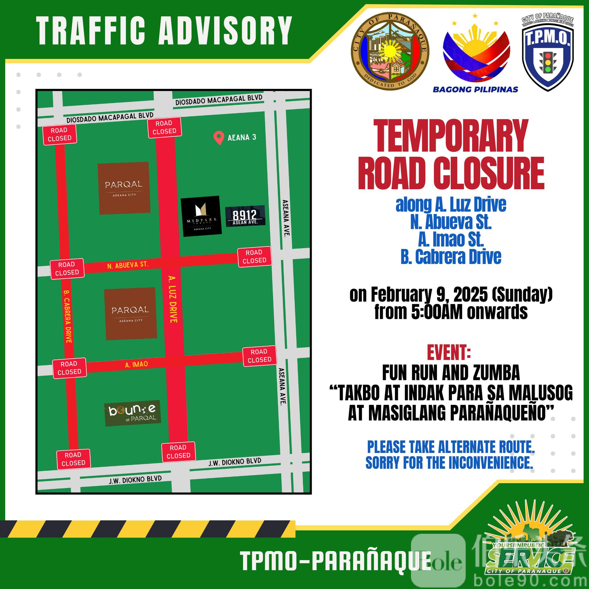 帕拉纳克市市长埃里克·奥利瓦雷斯 (Eric Olivarez) 表示,交通和停车管理办公室 (TPMO) 将从早上 5 点开始实施道路封闭。