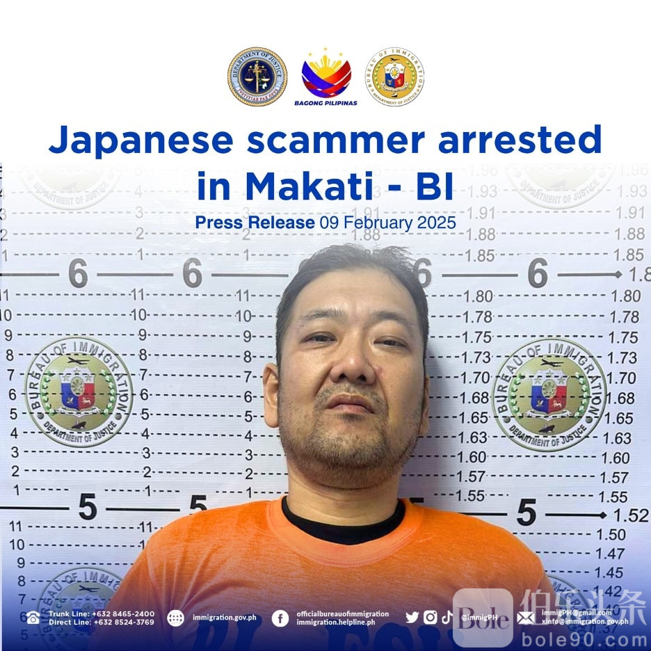 伯乐头条专讯:菲律宾移民局(BI)近日宣布,在马卡蒂市逮捕了一名涉嫌电信诈骗的日本逃犯,该男子长期受到东京当局的通缉。