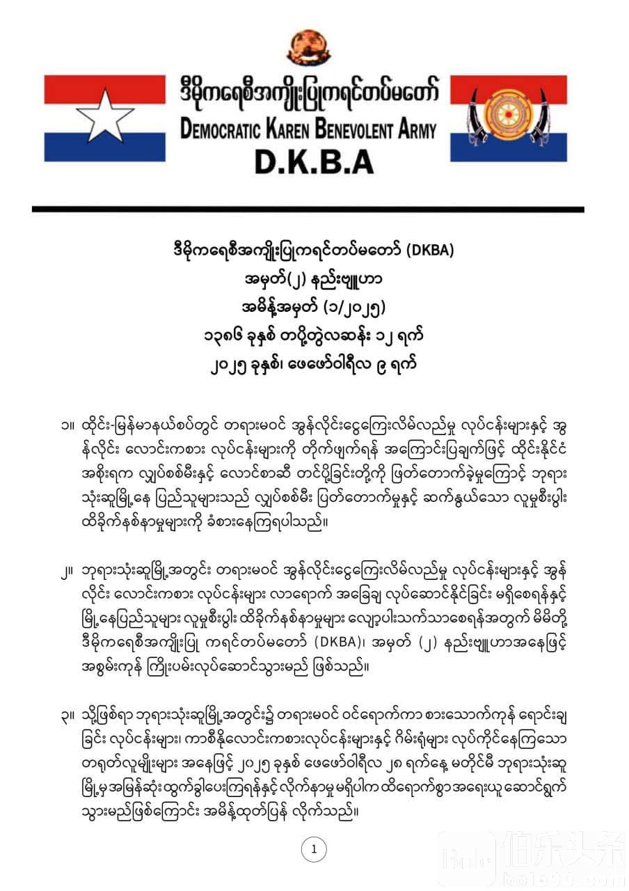 民主克伦仁军(DKBA)二号战略部今日(2月9日)宣布,将勒令在三塔城经营赌博业的华人尽快离开该城,并禁止其非法入境。