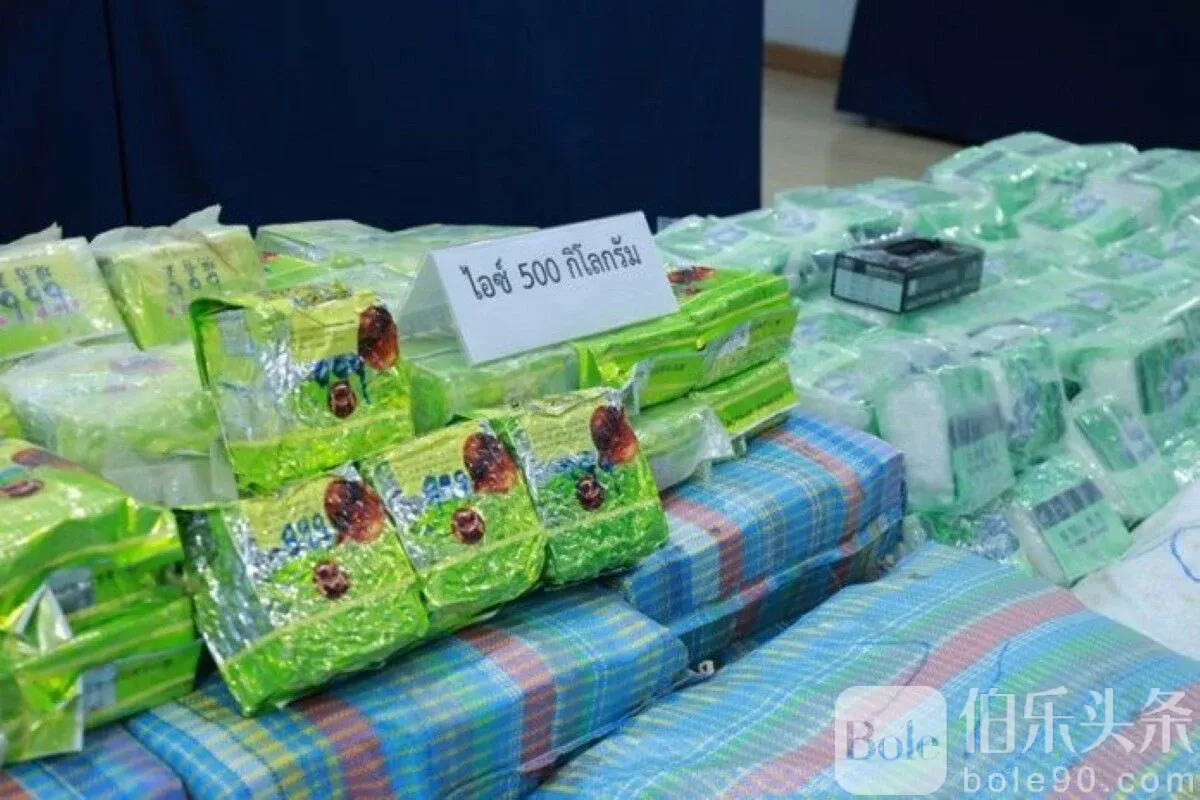 伯乐头条专讯:泰国毒品管制局(ONCB)与合作机构成功打击了一起跨国毒品走私案,缴获了500公斤甲基苯丙胺(冰毒)。此次查获的毒品来自金三角边境地区,预计将流入邻国市场。警方还查获了价值900万泰铢的资产,并逮捕了三名嫌疑人。