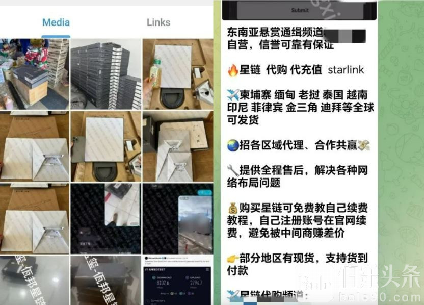 “柬埔寨、缅甸、老挝、泰国、越南等全球可发货,提供全程售后,解决各种网络布局问题。”这是一条由某“飞机群”管理员发布的消息,专门针对星链设备销售。