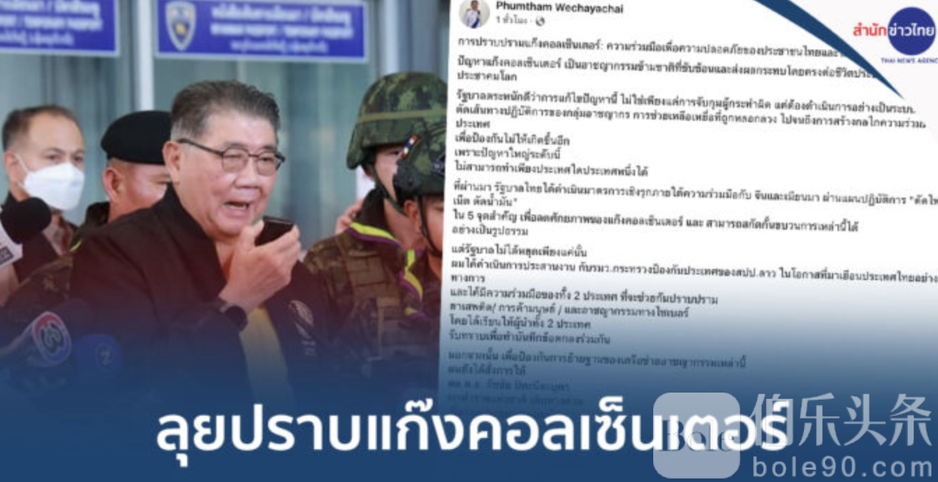 伯乐头条专讯:2月22日,泰国副总理兼国防部长普唐通过个人社交账号发文,主题为“打击电信诈骗:为泰国和全球民众安全而开展合作”。