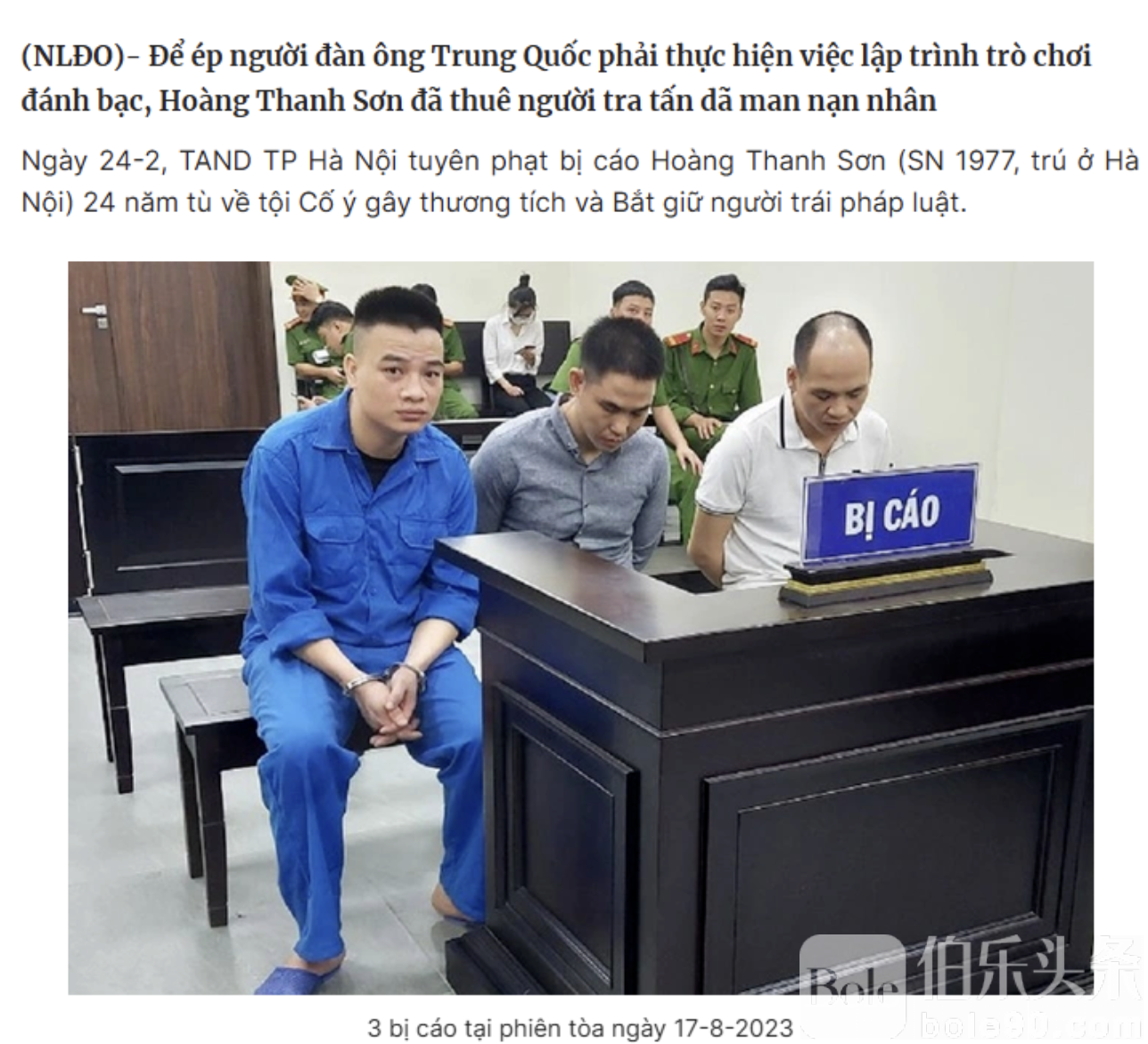 伯乐头条专讯:据越南媒体2月24日报道,一名中国籍程序员因拒绝为犯罪团伙编写赌博软件,在越南遭受长时间虐待与非法拘禁,甚至被拔掉12颗牙齿。案件主谋黄青松(Hoàng Thanh Sơn)最终被河内市人民法院判处24年有期徒刑。