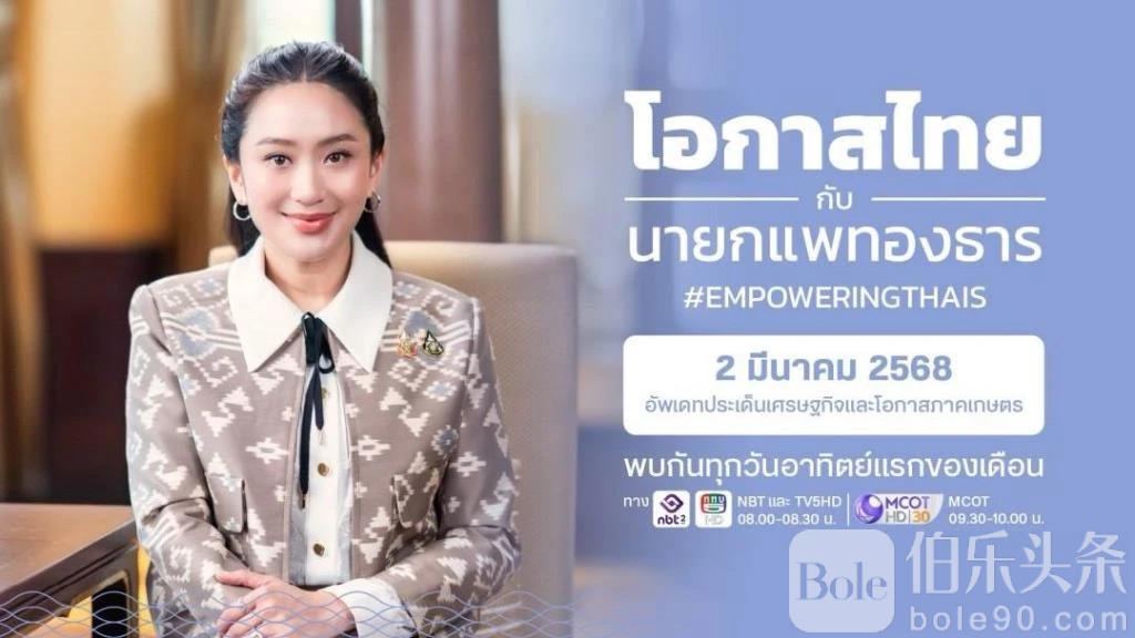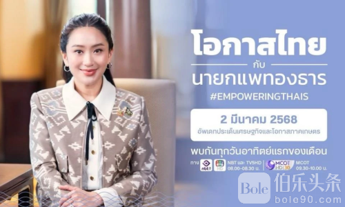 伯乐头条专讯:2月26日,泰国总理府办公室发言人吉拉育先生透露称,国家总理佩通坦将于3月2日早上08:00-08:30做客“与佩通坦总理共创泰国机遇”节目,届时节目将通过泰国NBT2 HD和TV5电视台、泰国广播电视台、全国广播网络播出。