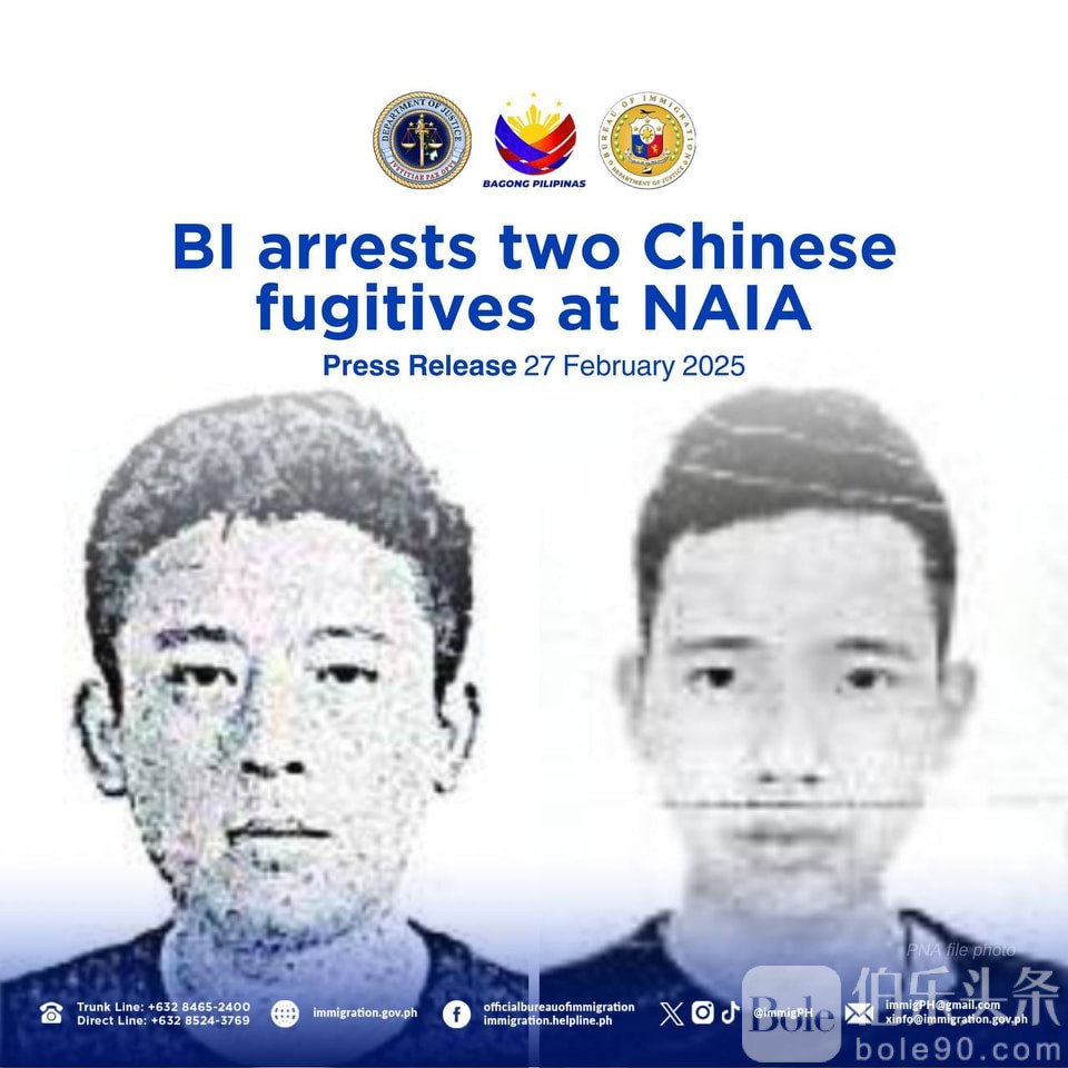 伯乐头条专讯:菲律宾移民局(BI)官员近日在尼诺·阿基诺国际机场(NAIA)成功拦截两名试图逃往马来西亚的中国籍逃犯。两人均受到中国当局及国际刑警组织的通缉,涉嫌严重刑事犯罪。