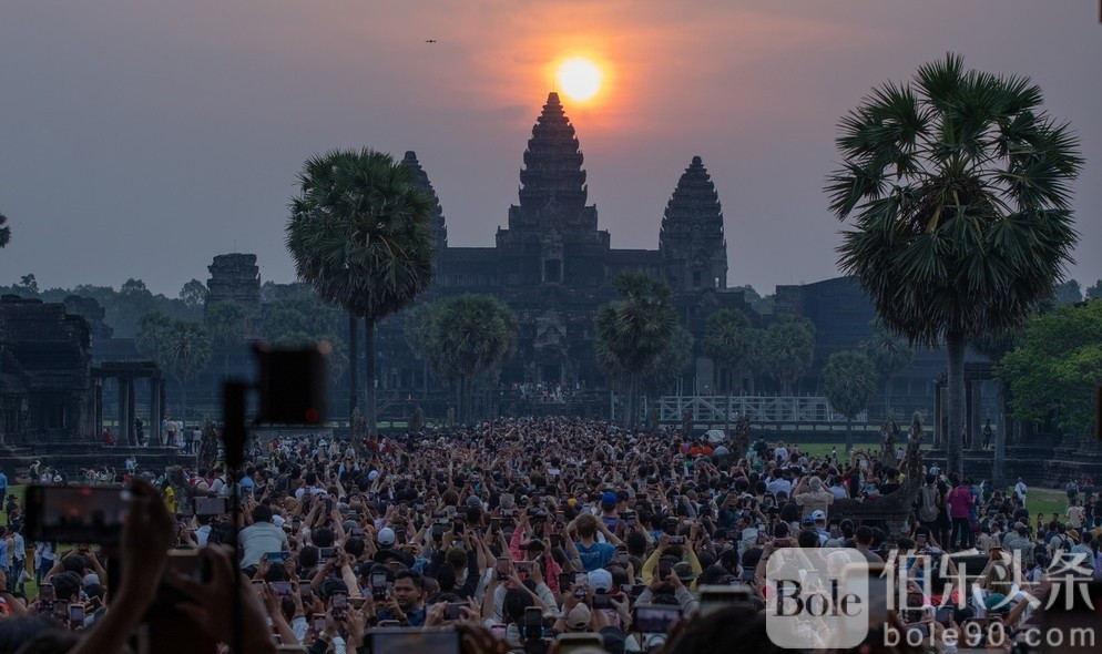 伯乐头条专讯:21日清晨,超过2万名国内外游客涌入吴哥窟,欣赏太阳从吴哥窟主塔塔尖升起的壮丽景观,感受震撼的日出美景。
