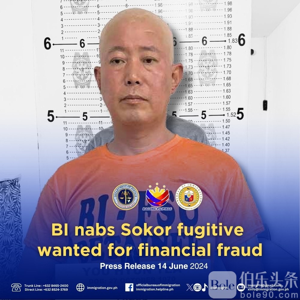 伯乐头条专讯:菲律宾移民局近日在宿务省(Cebu)Cordova镇逮捕一名参与金融欺诈案件的53岁韩国男子,并应韩方要求立即将其驱逐出境。