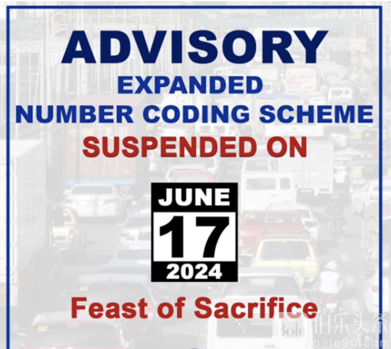 马尼拉大都会发展局(MMDA)宣布,为响应伊斯兰教的重要节日宰牲节,将于2024年6月17日(星期一)暂停实施车辆限号计划,以便公众能够自由出行
