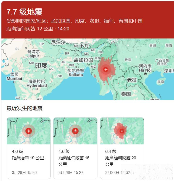 2025年3月28日14时20分(北京时间),缅甸发生7.9级强震,震源深度30公里,震中位于北纬21.85度,东经95.95度,距中国云南边境线约294公里。短短12分钟后,14时32分,缅甸再次发生6.4级余震,震源深度30公里。地震导致道路塌陷,建筑物受损严重,人员伤亡情况惨重!