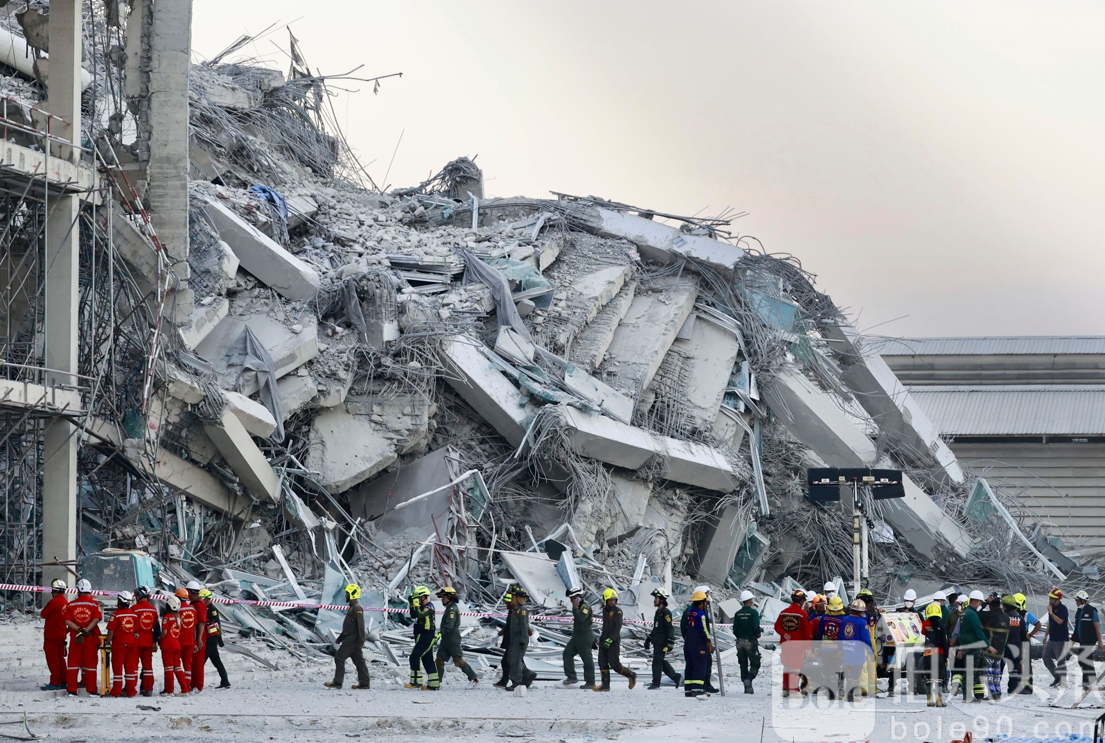 在泰国曼谷,位于著名的乍都乍市场附近,一栋33层的在建高楼顶部吊着一台起重机,倒塌后扬起漫天尘土。从社交媒体上的视频可见,现场围观者惊恐尖叫,四处逃散。