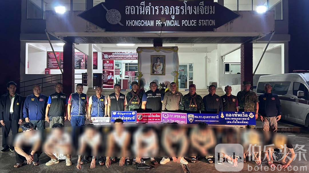 紧接着,国家移民局乌汶府办事处带领下属调查组联合Suranaree部队等,逮捕了10名偷渡入境人员,分别是8名中国人和2名缅甸人。据悉,上述人员是于3月29日晚自位于乌汶府孔坚县的天然码头区域偷渡入境,其中的中国人来自中国的多个城市,而2名缅甸人则是来自果敢。