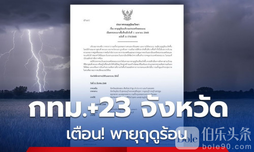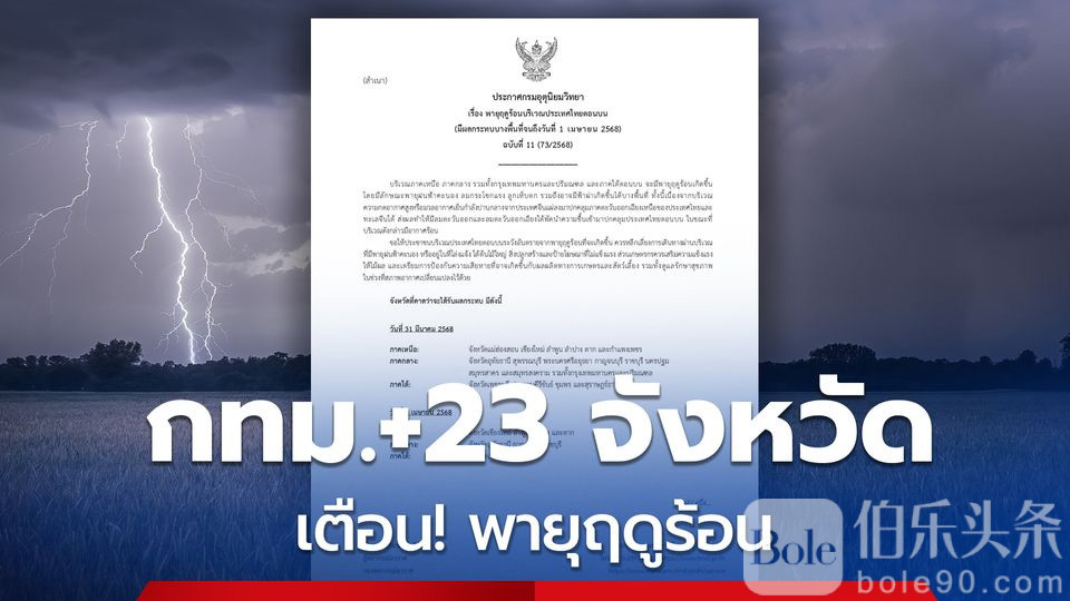 伯乐头条专讯:3月31日,泰国气象局发布报告称,泰国北部地区、中部地区、曼谷及周边地区和南部上部地区将会出现雷暴天气(Thunderstorms),届时将会出现雷雨、强风且局部地区可能会出现雷电,原因则是来自中国的高压或中等冷空气团蔓延至泰国的东北部地区,使得由东风和东南风带来的水分覆盖了泰国上部地区,而目前该地区的气候非常炎热。