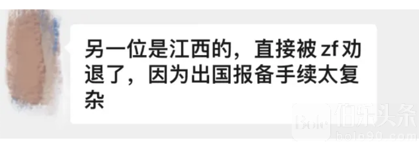 据称,另外一位招聘的候选人来自江西,在向户籍所在地报备出国需求的时候,政府工作人员直接劝返,因为当地出国报备手续流程太复杂。