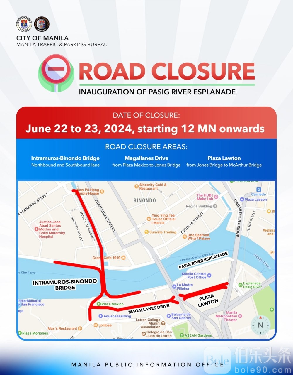 伯乐头条专讯:马尼拉市政府周五宣布,今日将因巴石河滨艺术中心项目的落成而封闭道路。