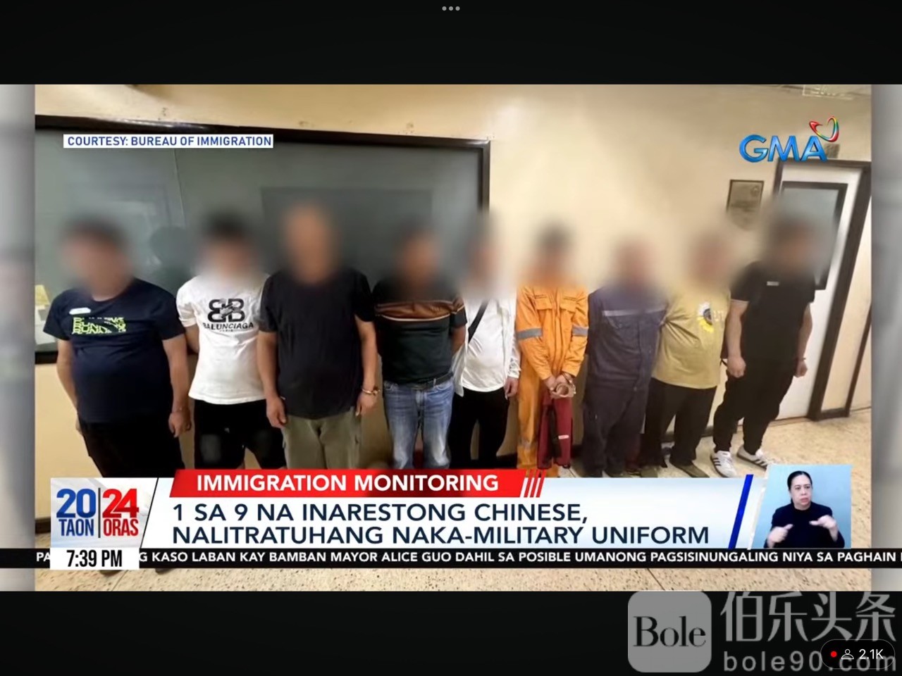约瑟夫·莫荣(Joseph Morong)在周一的《24小时》报道说,菲律宾移民局(BI)和武装部队(AFP)的一个小组在帕拉纳克渔港拦住了这些中国男子,当时他们刚从一艘摩托艇上下来,并登上了一辆等候的面包车。