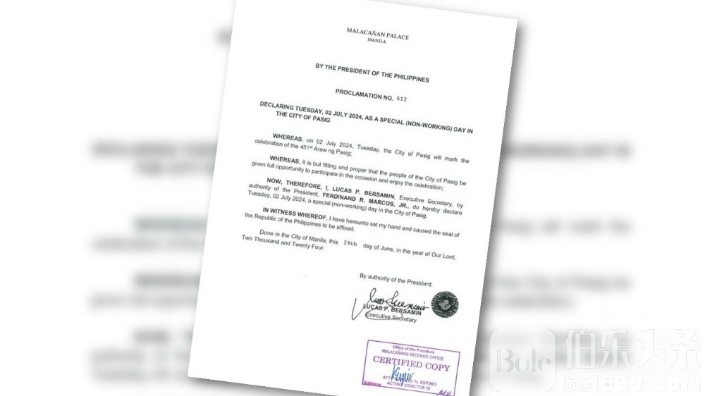 文官长卢卡斯·贝萨民(Lucas Bersamin)于6月29日签署了第612号公告,特别指出这一非工作日旨在让巴石市民充分参与并享受他们城市的成立周年庆祝活动。