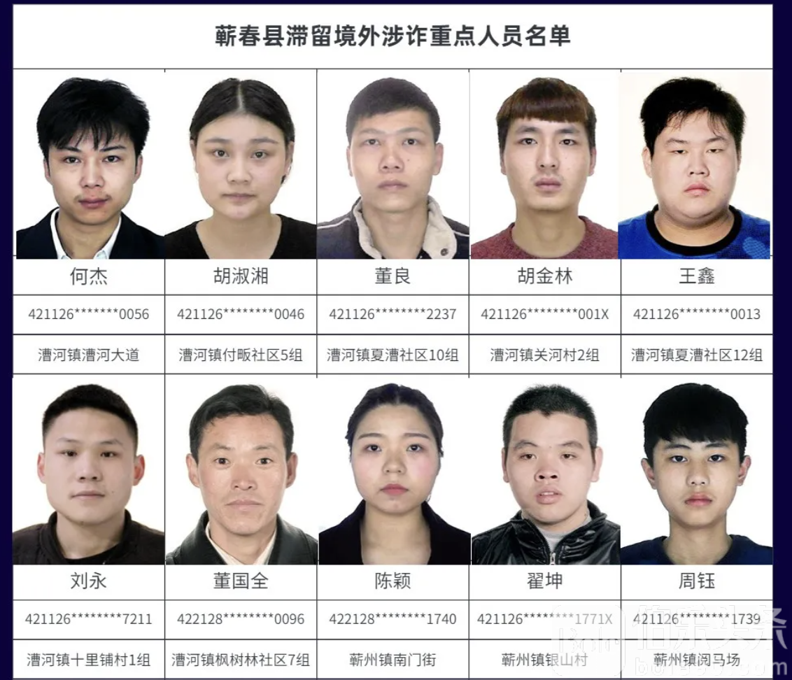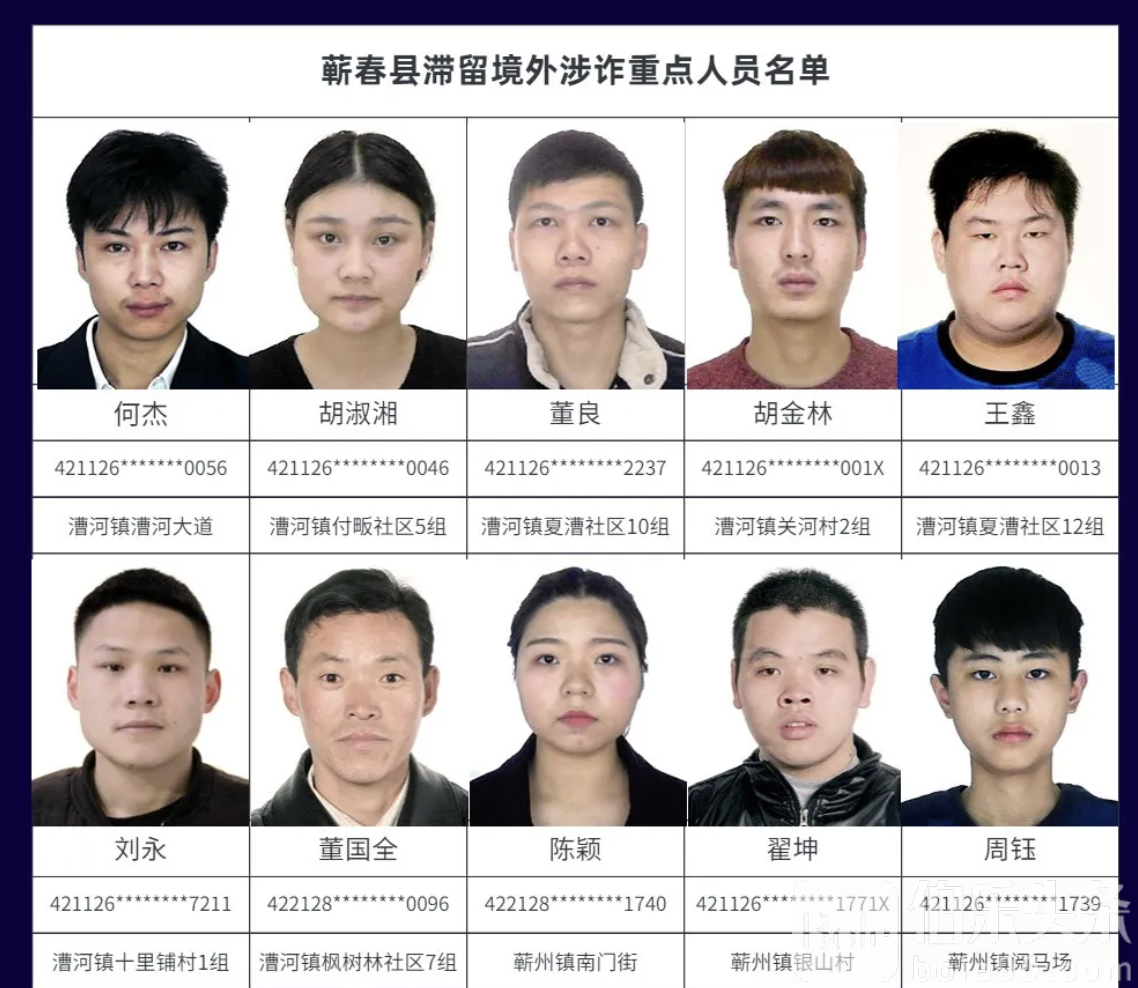 五、欢迎广大人民群众积极联系公安机关,检举揭发 或提供相关信息。 附:蕲春县滞留境外涉诈重点人员名单
