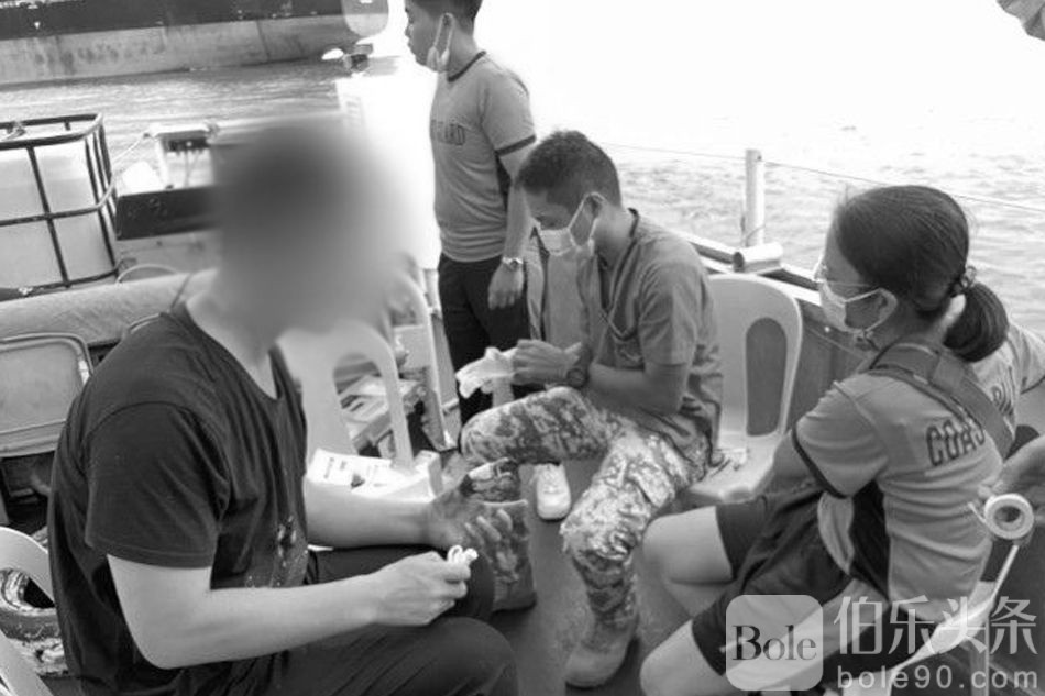 PCG的医务人员随即登船,为这名受伤的中国工程师提供紧急医疗救护。