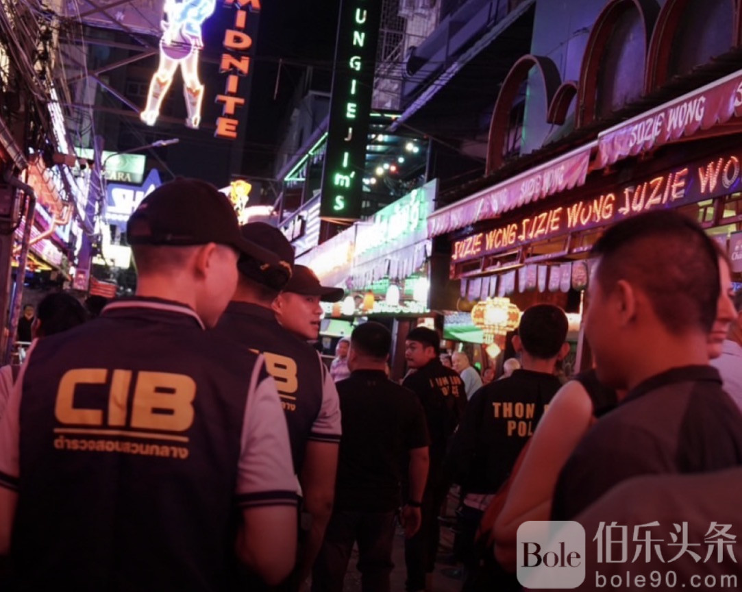 伯乐头条专讯:4月21日晚,泰国中央调查局下属人口贩运调查局会同旅游警察、移民局警察及曼谷通罗警察局,在曼谷瓦塔那区Cowboy街(牛仔街)一带联合开展执法宣传行动,聚焦提升娱乐场所从业人员对人口贩运问题的认知与防范能力。