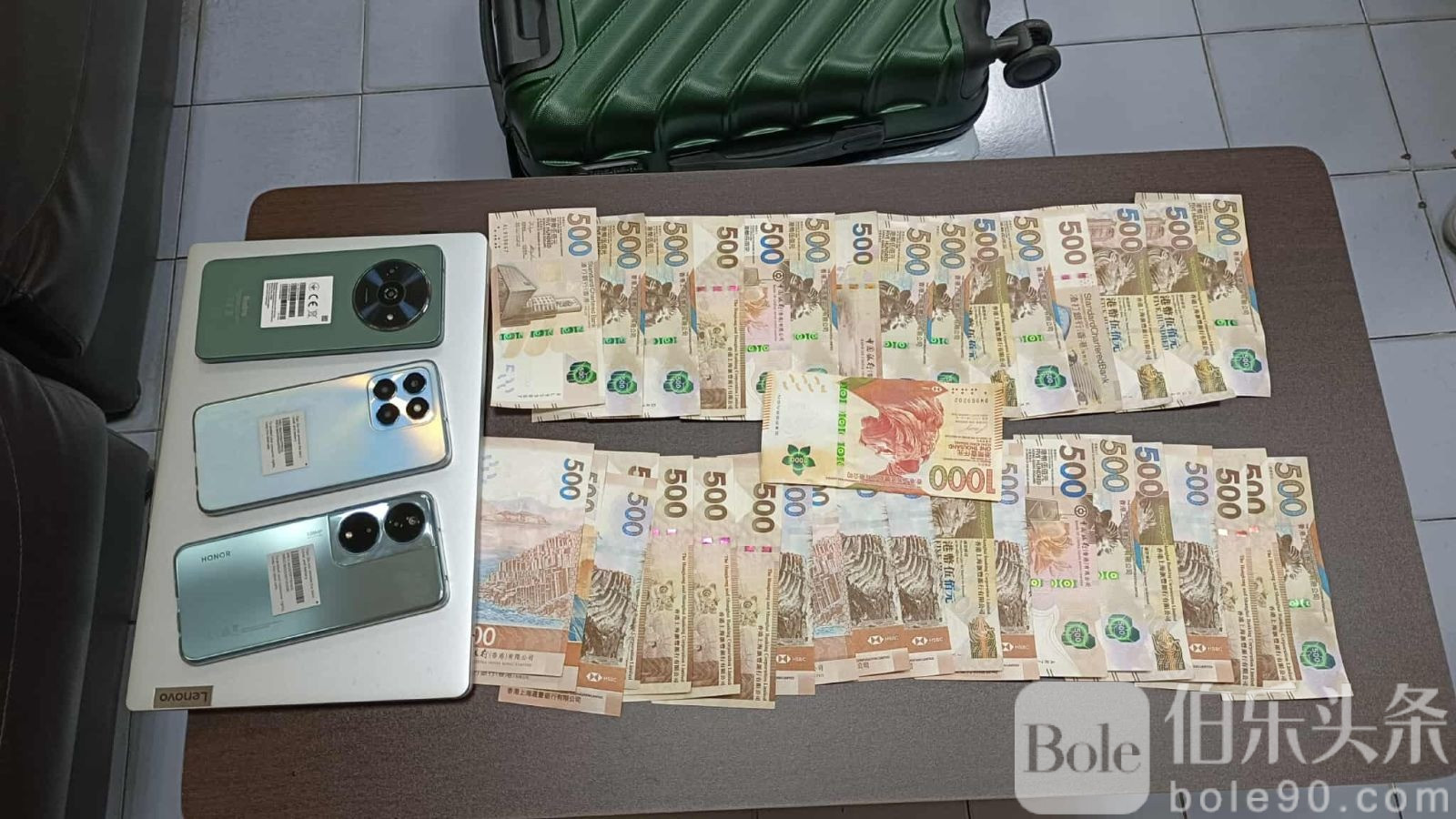 电台工作人员检查后发现,行李箱内有一塑料袋,袋里装有18,500港币(约合79,449泰铢),两部荣耀(HONOR)手机、一部红米(REDMI)手机以及一台联想(Lenovo)笔记本电脑,总价值超过10万泰铢。