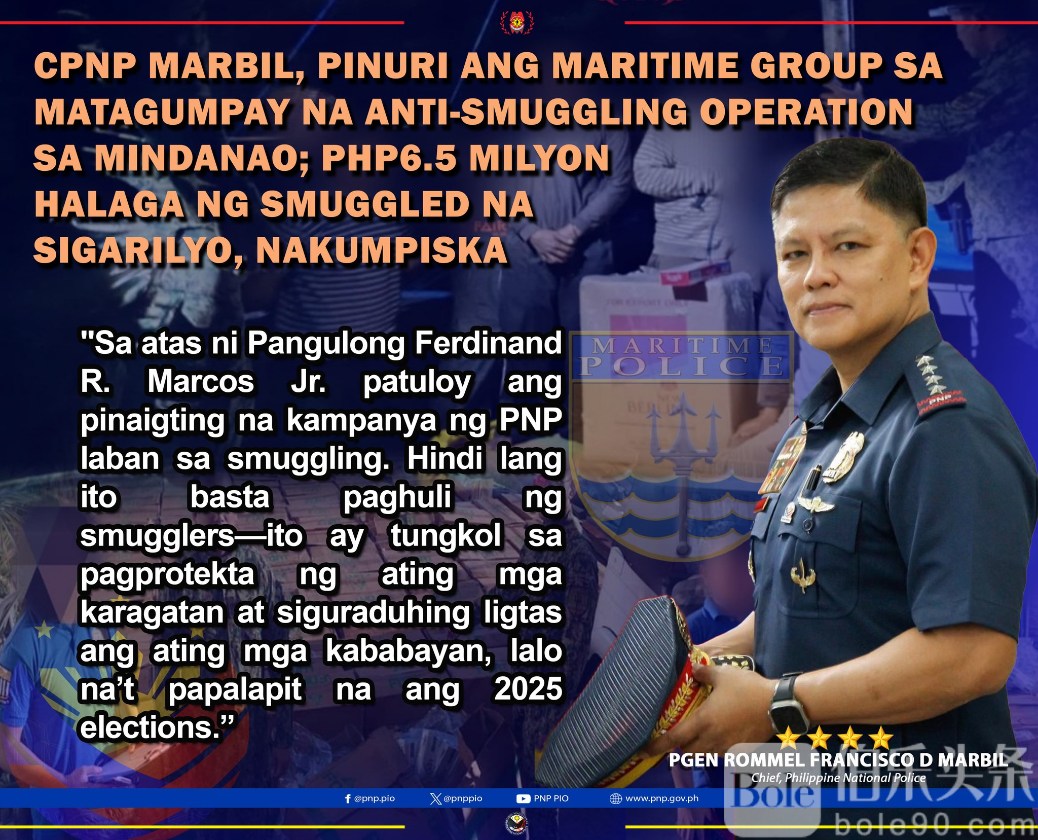 伯乐头条专讯:菲律宾国家警察(PNP)于4月19日凌晨在棉兰老岛三宝颜德尔苏尔省沿海展开一次重大海上执法行动,成功阻止一起香烟走私案件,查扣走私香烟及相关物品总值超过652万比索。