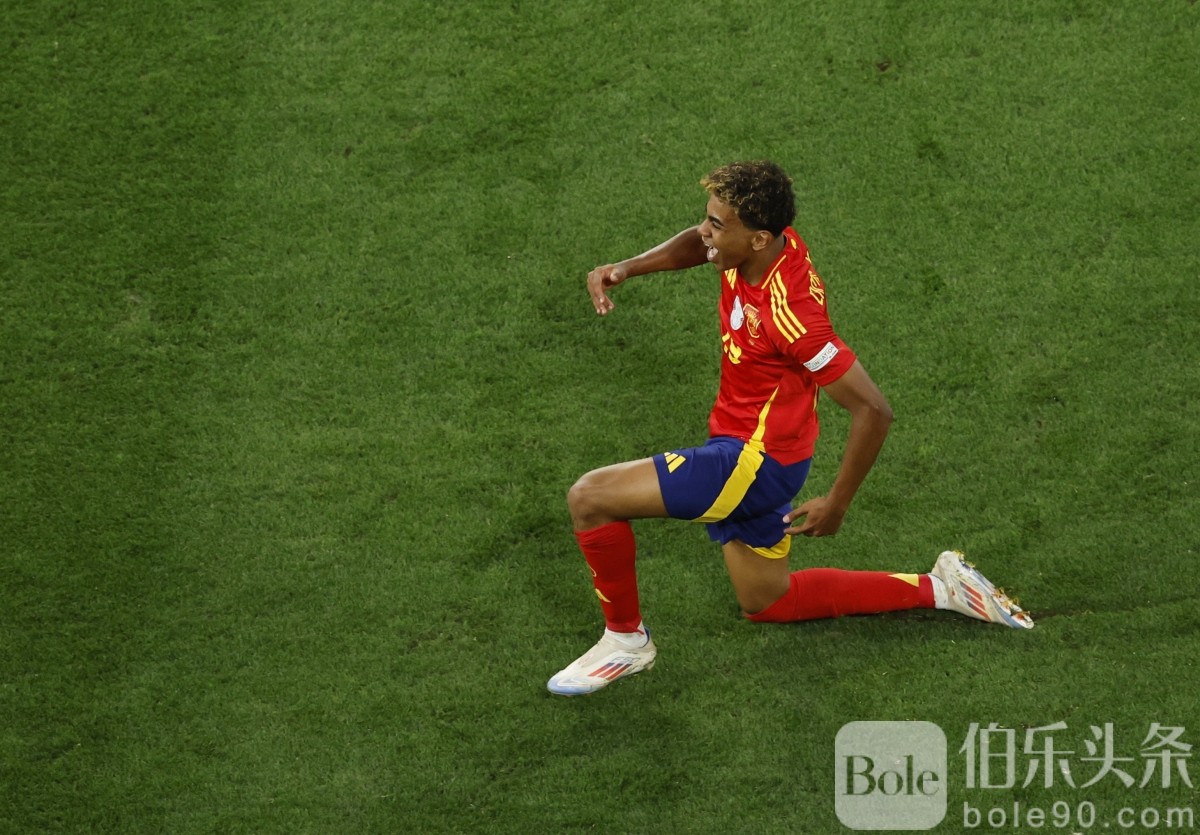 第21分钟:西班牙年轻天才亚马尔在一次带球突破后,用左脚劲射破门,将比分扳平1-1。